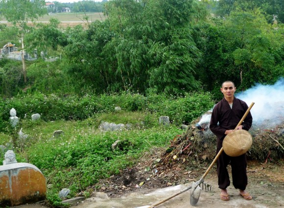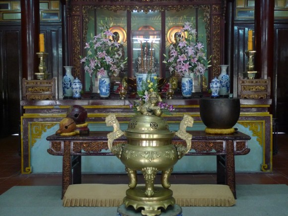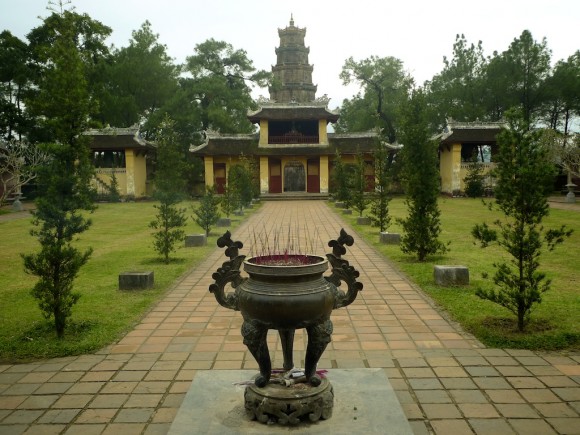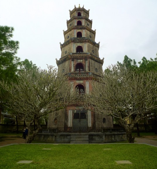 Built in 1601 by Lord Nguyen Hoang, Thien Mu Pagoda known as the ( Heavenly Lady ) is the oldest religious building in Vietnam, situated on Ha Khe hill, on the north bank of the Perfume River. Legend has it, that an old woman appeared on a hill and said that a Lord would come and build a Buddhist pagoda for the country’s prosperity. Lord Nguyen Hoang heard of this prediction and ordered the construction of the “Heavenly Lady”. The temple complex is divided in seven successive tiers, each of which is dedicated to a human form taken by Buddha as he reached enlightenment. A complex of monastic buildings lies in the center, where the monks perform there duties, and novices practice their calligraphy. A building houses a national relic: the car in which the monk Thich Quang Duc rode from his temple to Saigon on June 11, 1963. He stepped out of the car in an intersection, sat down in the lotus position, and burned himself to death in protest against the regime’s violations of religious freedom. At the end of the complex is a large cemetery at the base of the Truong Son mountains and a sacred garden of pine trees. The pine’s are revered throughout the complex as a symbol of peace and fortitude. A walking meditation, as I observe this serene place, inhabited by wisdom and devotion, contemplating the buddhist way of life. A harmonious atmosphere, watching each monk enjoy there duties, the pruning of the hundred year old bonsai’s, calligraphy of ancient text, and the many rituals of devotion to buddha.