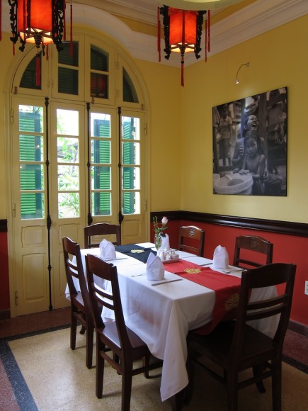 After visiting the Imperial City of Hue in the morning, we walked over to Les Jardins de la Carambole for lunch. This charming restaurant, is a small house in a residential neighborhood with a lovely garden. Eating on the terrace under the arches surrounded by flowers and fruit trees, this serene and peaceful atmosphere is the perfect spot to recharge. The menu offers both french and vietnamese dishes, a friendly staff will make your dining experience a pleasant one.