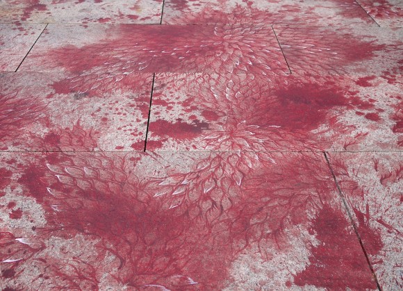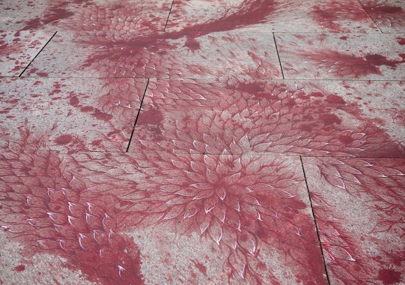 Artist Imran Qureshi born in Pakistan, was commissioned a large scale installation on the roof top of the Metropolitan Museum in New York. The 8,000-square-foot terrace is splattered with red paint. The poetic nuance of this majestic piece, is the blossoming of flowers, leaves, bird feathers and angels wings intertwined in blood stains. At first you feel sadden, fearing to step in to it, as you get closer you realize there is life inside each stain, delicate symbols of hope and innocence. You are transported into a sea of beauty, everything comes alive with each stroke. A truly profound experience, to be experienced. “From death grows life; from horror comes transcendence; hope emerges from despair”. The titled of this piece is called “And How Many Rains Must Fall before the Stains Are Washed Clean”