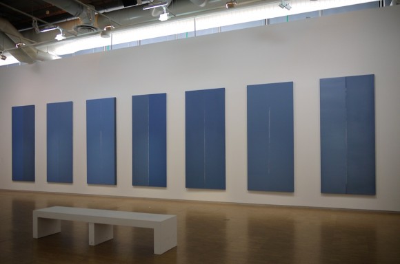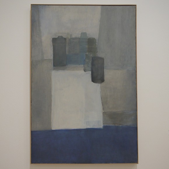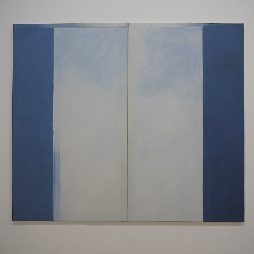 “Behind the horizon, the dawn, shaded grey, transparent blue-black ultramarines, whites that disappear into the grain of the canvas, nothing from the exterior except for time” (Working Notes, 1974).