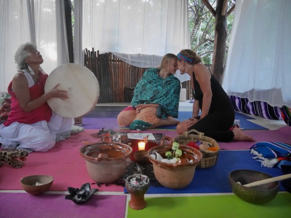 What a blessing to be with my sisters during this full moon in Leo. As the moon pours down a tremendous amount of energy, everything is amplified, we connect with this female energy swelling inside of us. We gather together releasing our intentions set on the new moon into fruition. Our sacred altar is blessed with white corn, water, flowers, fire, feathers, instruments and copal, all the objects and symbols ignite creativity, passion and inspiration for this full moon in Leo. Gathering together to release our prayers, intentions and medicine songs is very powerful. We are honoring the goddess of the sea, by offering our love, devotion and gratitude. These simple ceremonies activate our intentions and heal the land, a beautiful exchange of the heart is released in the cosmos. Nurturing our tribe and all the elements that support our spiritual growth.